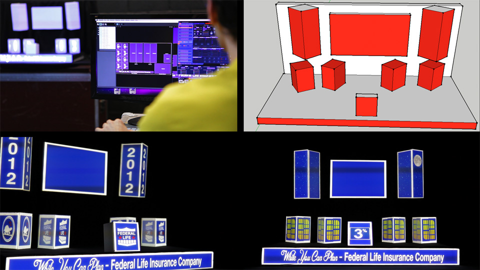 For Midwest live events, Chicago Projection Mapping offers full custom-designed stage setups and content, as well as pre-fabricated stage packages. Both are created with the needs of event planners and trade show coordinators in mind, and can be easily integrated within existing stage and booth plots.