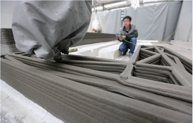 WinSun’s printer is impressive in its own right, standing 20 feet high and 132 feet wide and uses industrial waste as printer material. They plan to build 100 recycling plants around China in order to keep up building demands.